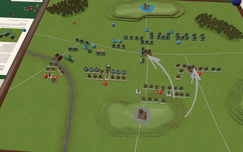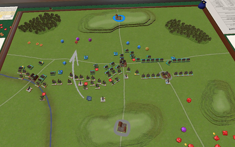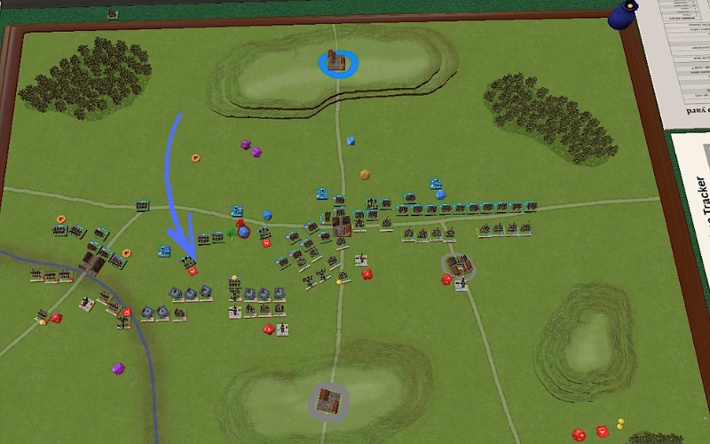Due to lucky Initiative rolls, the Austrians were able to take the two villages to their right and center.