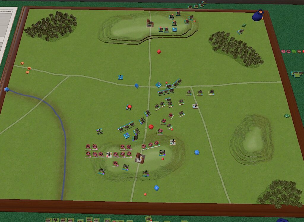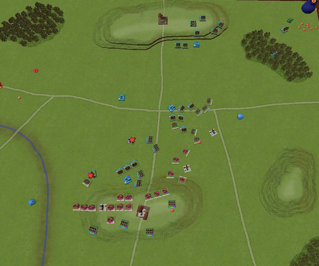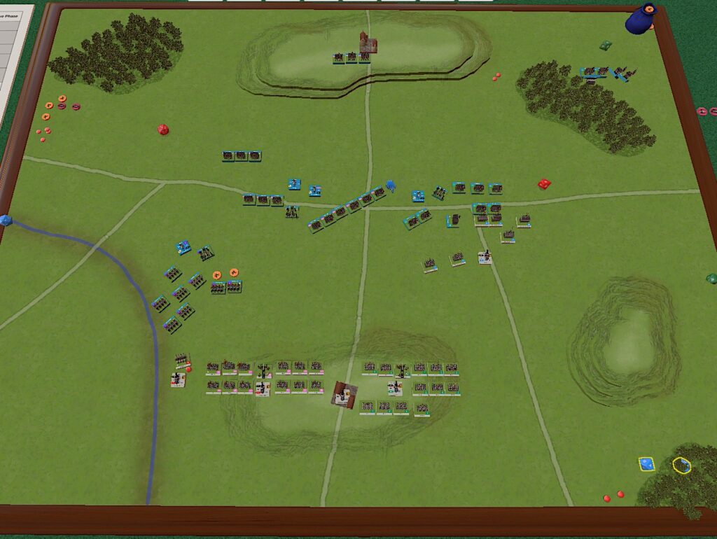 In this scenario, the Austrian divisions that remained idle on the ridge preserved their strength far longer than those engaged early in the battle. Their late-game freshness hinted at what might have been: given another five or more turns, the Austrians could perhaps have pressed the French line and even seized their objective—but at terrible cost. It would have been, as Wellington once said, a “close-run thing.”